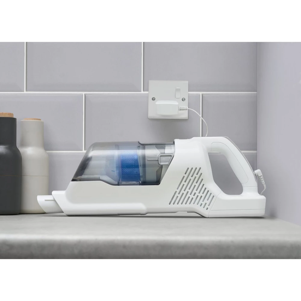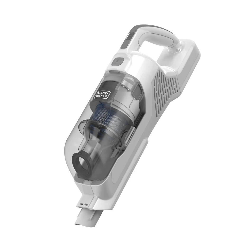- ACCESS CONFINED SPACES UNDER COUCHES AND BEDS with front-facing dustbin which allows stick vacuum to lie flat while cleaning