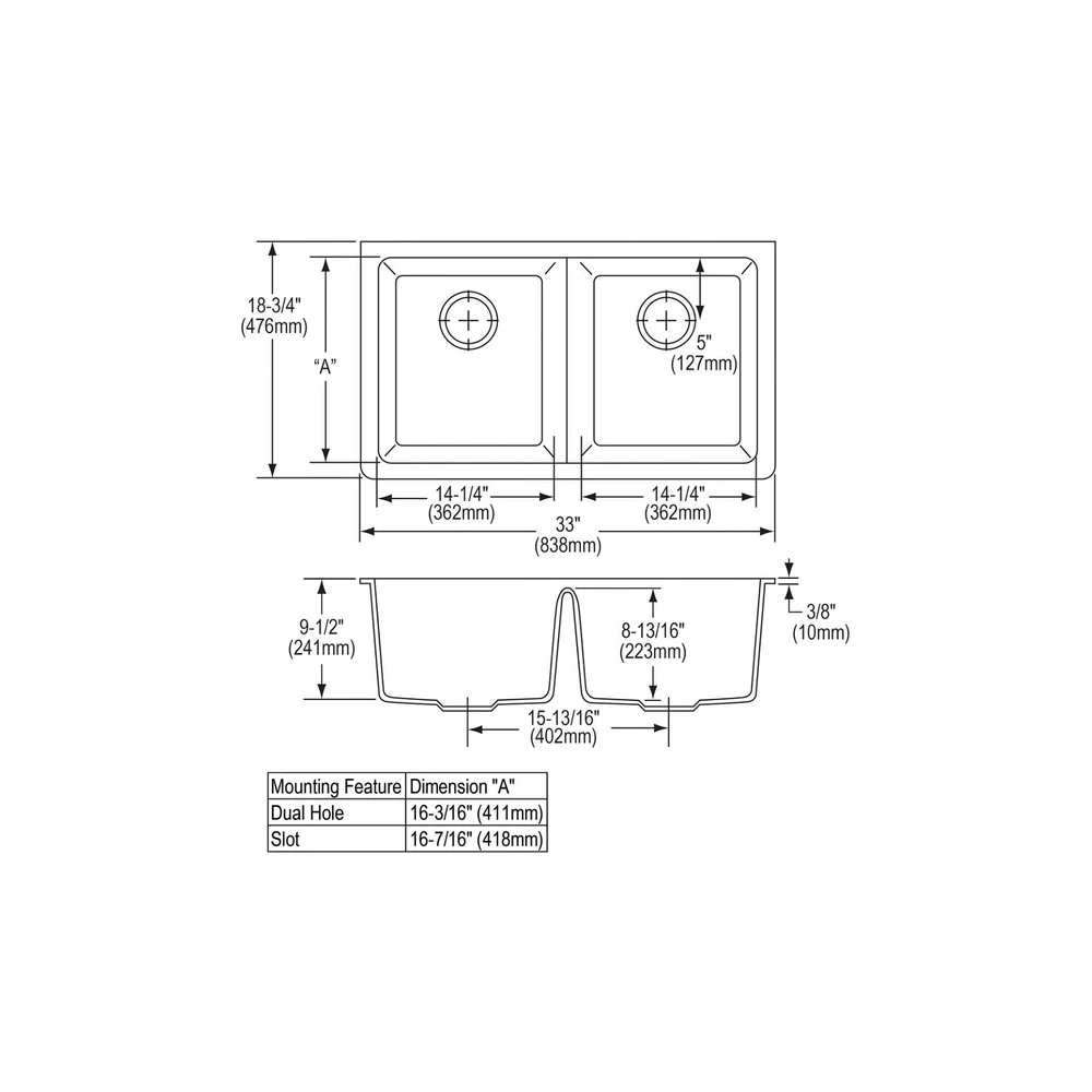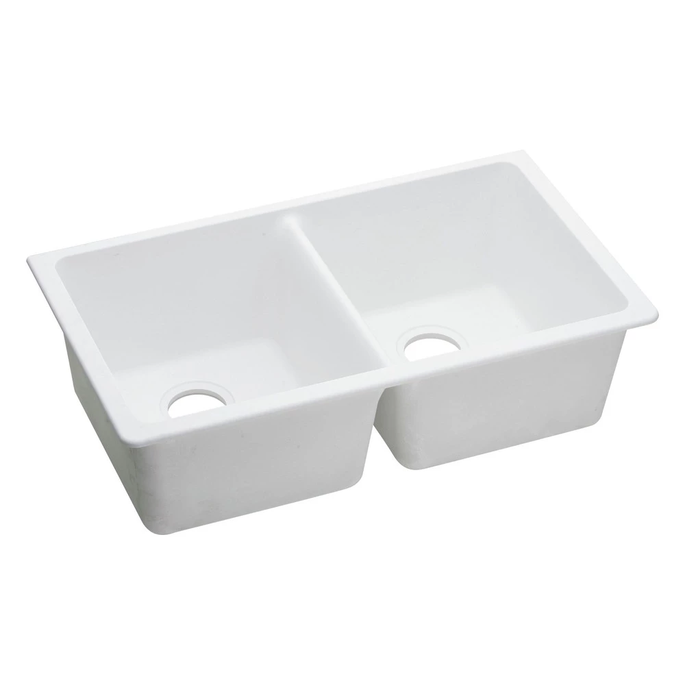 - 33 in. x 18-1/2 in. Equal Double Bowl Sink – ELGU3322WH0