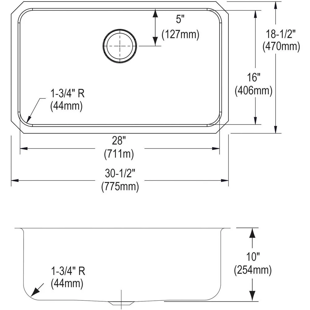 - 30-1/2 in. x 18-1/2 in. Single Bowl Sink – ELUH281610