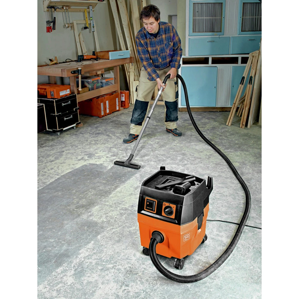 The FEIN Turbo Vacuums are sophisticated professional tools for effective dust extraction from power tools and to clean workplaces, both in the shop and on-site. The lightweight, robust FEIN Turbo vacuums set standards in the compact vacuum class by being incredibly powerful and versatile. Due to their compact size, they ensure effective dust extraction, even in tight conditions. The FEIN Turbo Vacuums offer a convenient and practical accessory storage area.