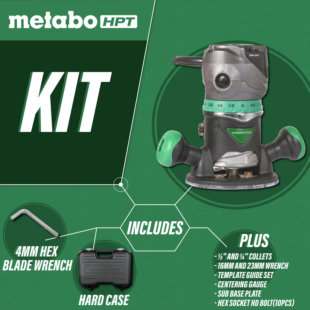 - 2-1/4 HP Variable Speed Plunge and Fixed Base Router Kit – KM12VC