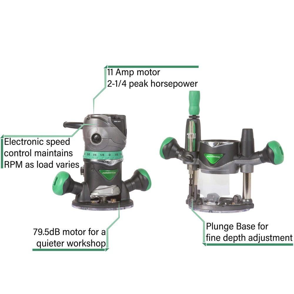 - Fine depth adjustment (plunge base) for precise depth control