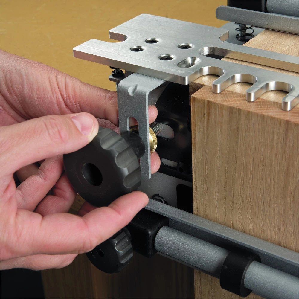 - Template alignment lines and router bit depth gauges allow for quick, easy set-up