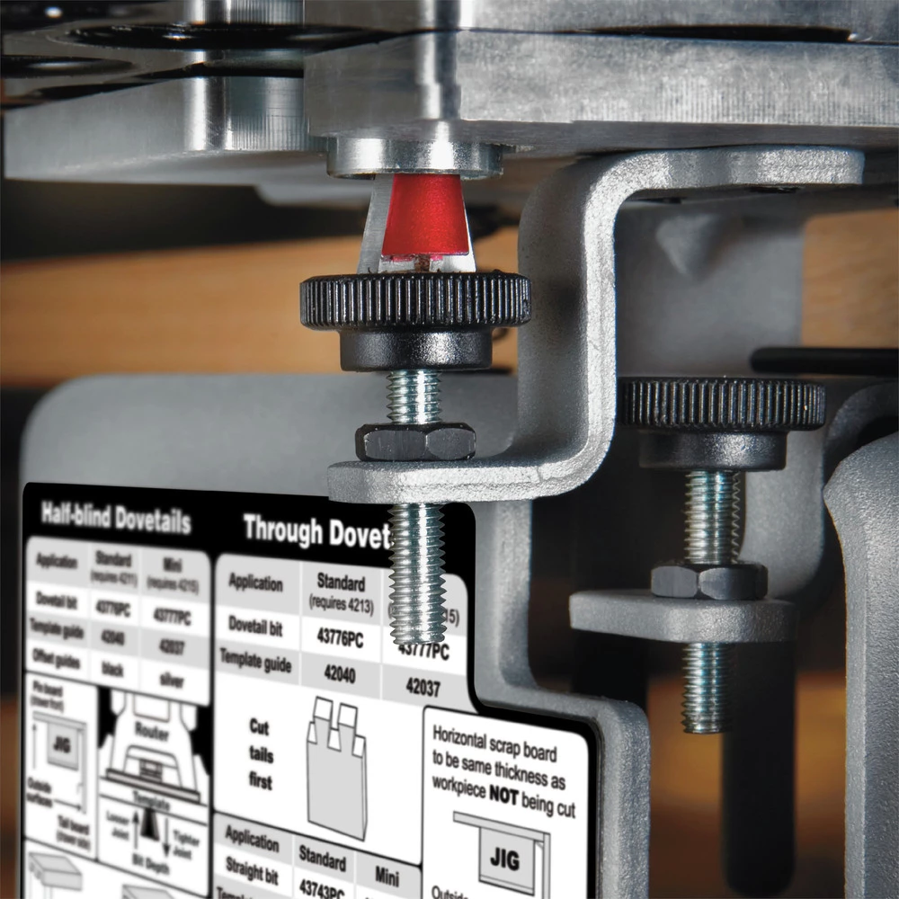 - Includes template 4211 for half-blind, rabbeted half-blind and sliding dovetails