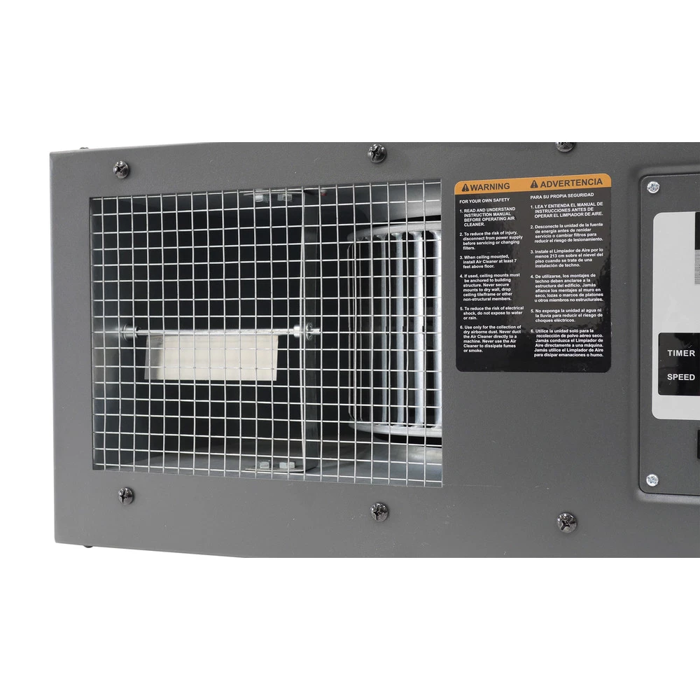 - Exceptional Features Include: Indicator monitors and alerts when filter is dirty ensuring optimal air cleaner performance. 1 outer washable electrostatic filter. 3 Speed Operation (540, 730, 1200 CFM). Recycles all of the air in a 20 ft. x 20 ft. x 8 ft. space up to 22 times/hour at highest speed setting. Remote Control offers convenience for on/off, speed adjustment and timer programming when unit is mounted on the ceiling or in hard-to-reach areas.
